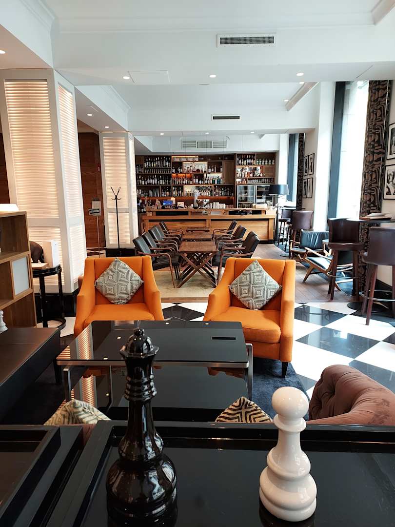Blick in die Lobby und die Bar (hinten)