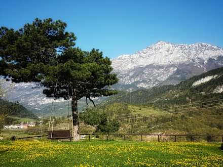 Garten mit himmlischer Aussicht und himmlischer Schaukel vor dem Hotel Lilla