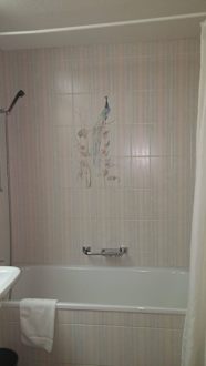 Peacock tiled shower