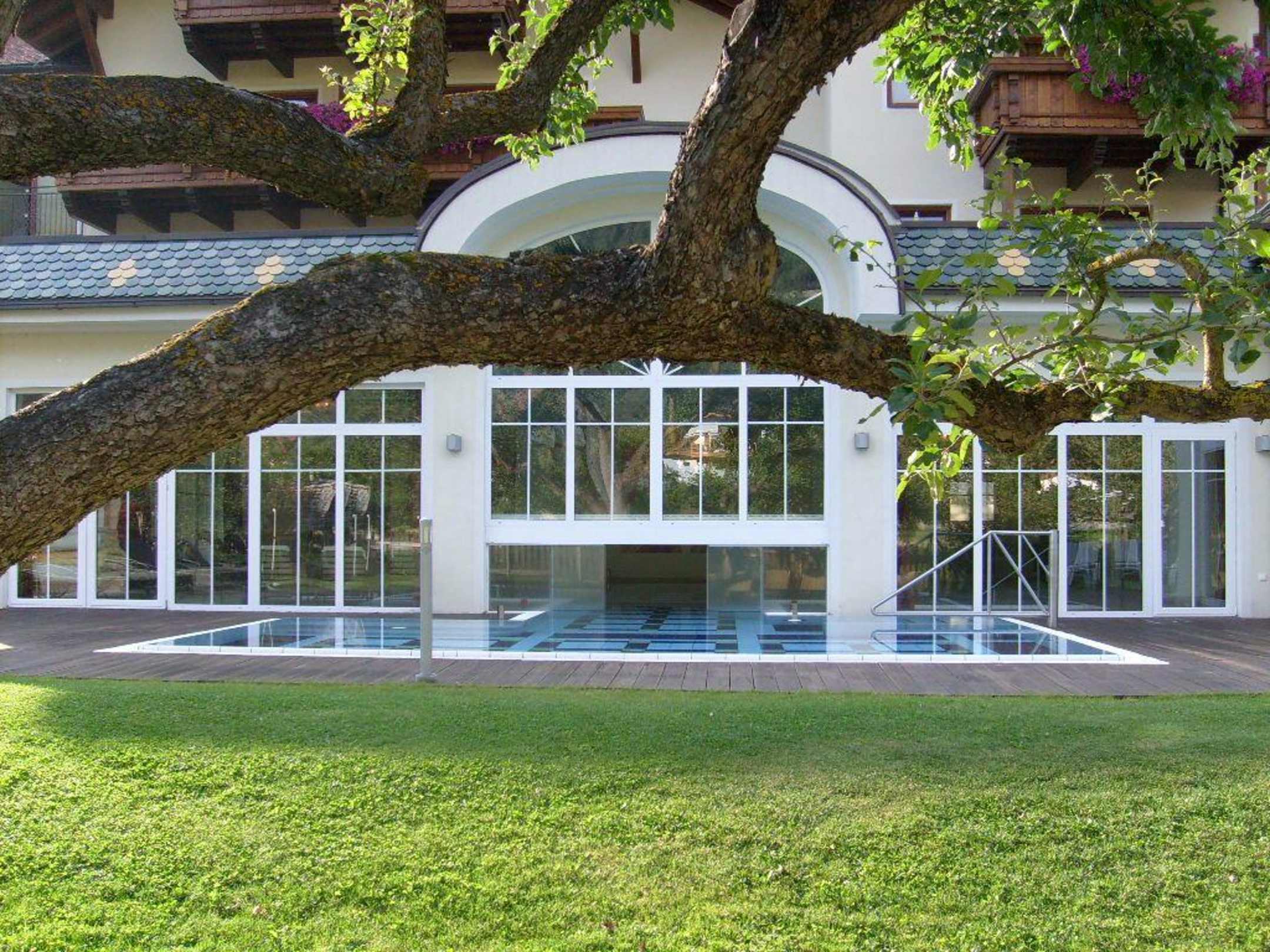 La piscineIl y a une piscine intérieure qui se prolonge à l'extérieur et l'eau est chauffée, un délice!