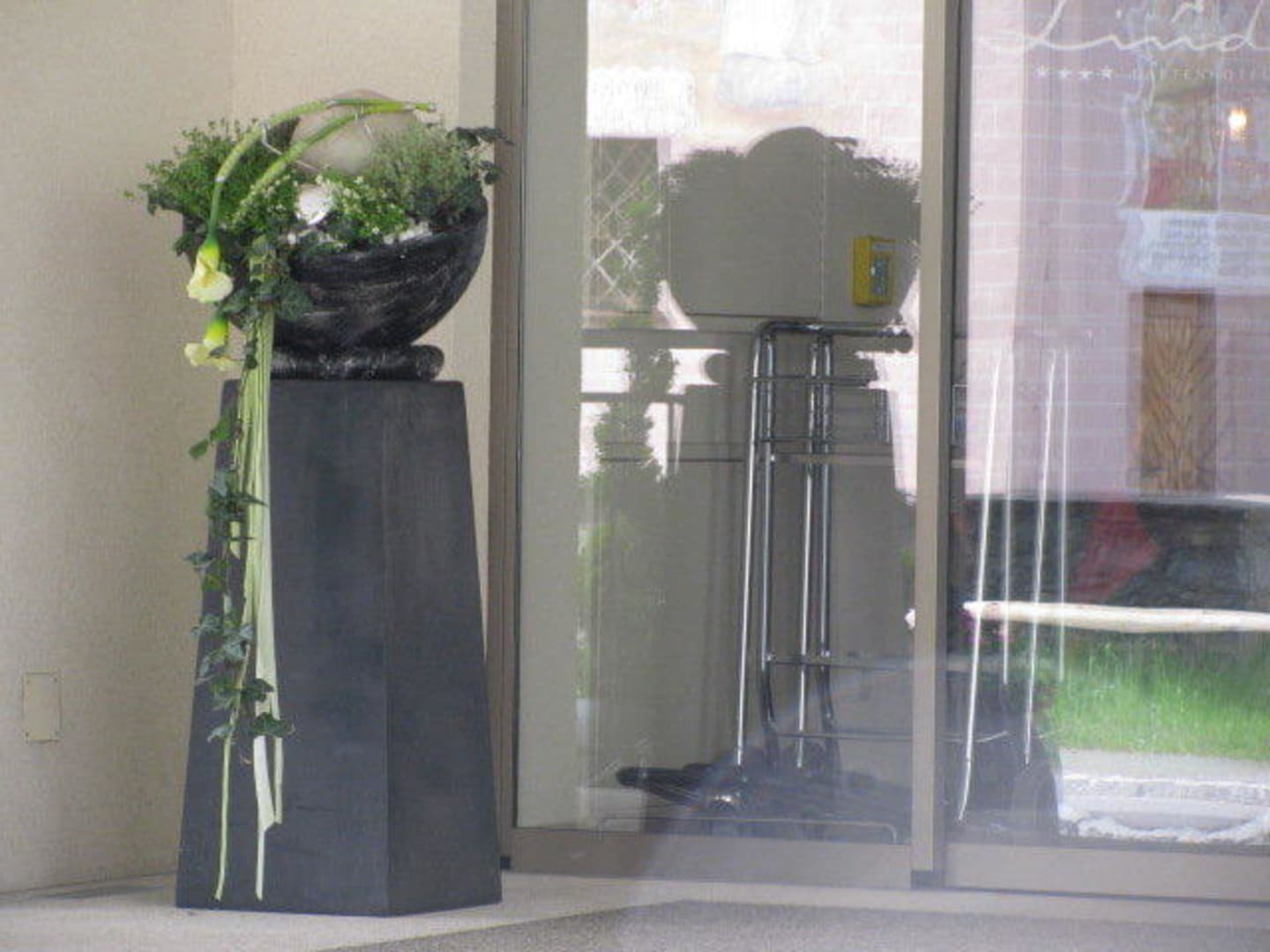 Blumenarrangement am Eingang