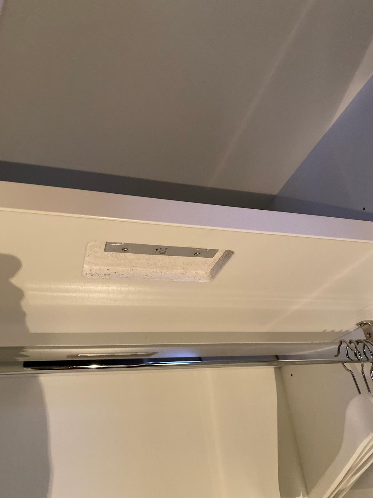 Kleiderschrank, leider wurde die Lampe scheinbar nur oben drauf gelegt - war direkt nach dem check-in (siehe nächstes Bild) - was ich mich hier frage, wurde der Schrank nach dem Gastwechsel nicht gereinigt, oder wurde es übersehen?
