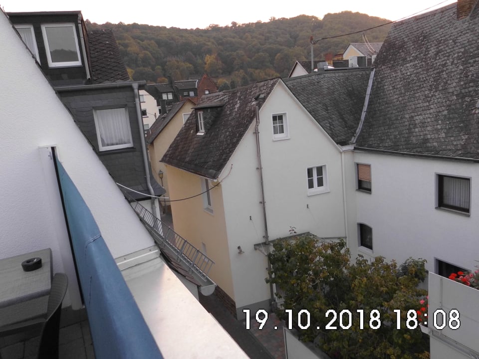 Der Ausblick von der Frischluftzone im Saunabereich.