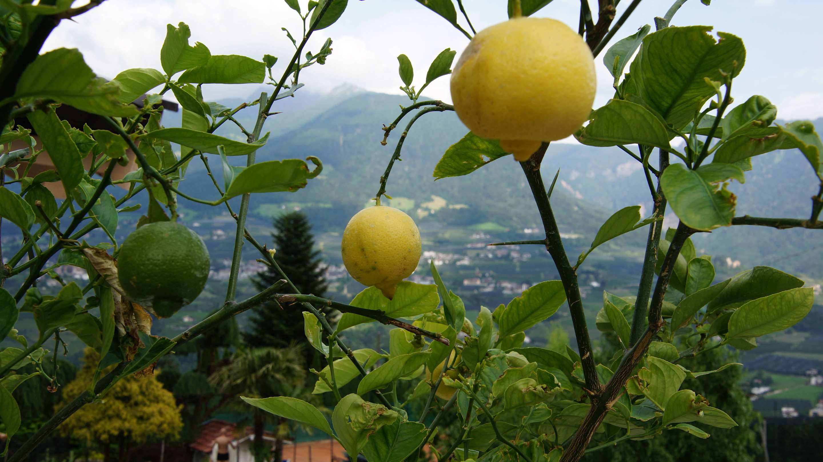Blick durch die Zitronenbäume nach Schenna