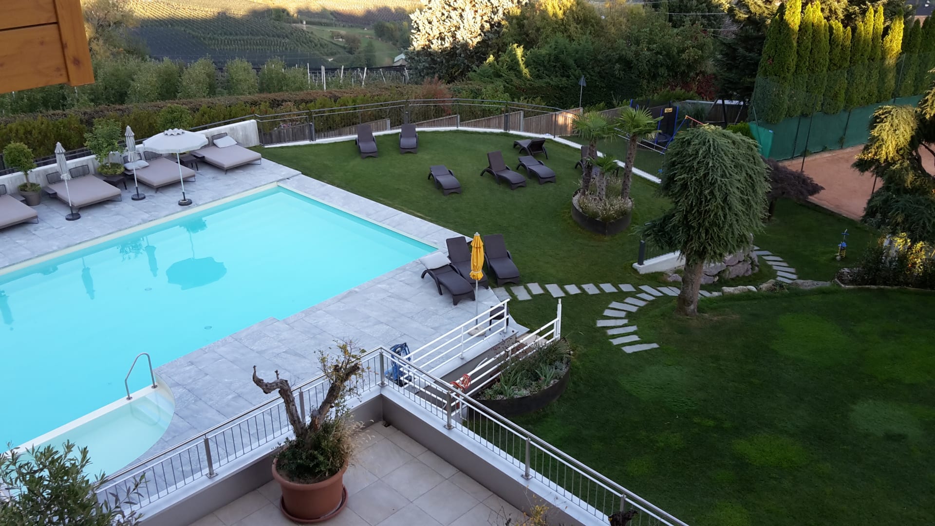 Aussicht von unserem Balkon in den Garten