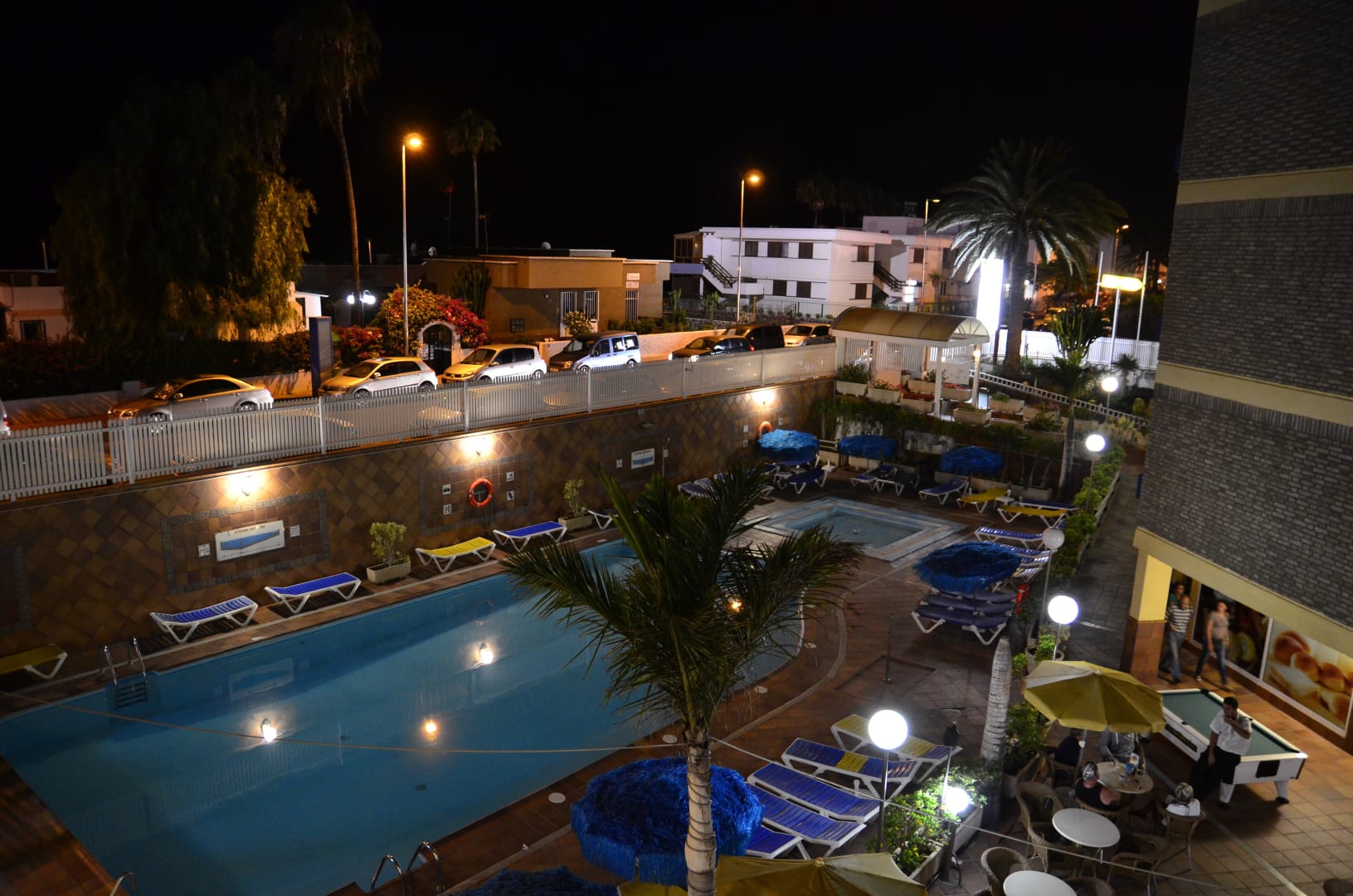 Vom 2. Stock abends auf dem Pool geblickt