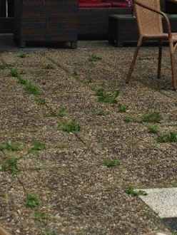 Ungepflegte TerrasseÜberall kam das Unkraut hervor, in einer Ecke der Terrasse stapelte sich Unrat.