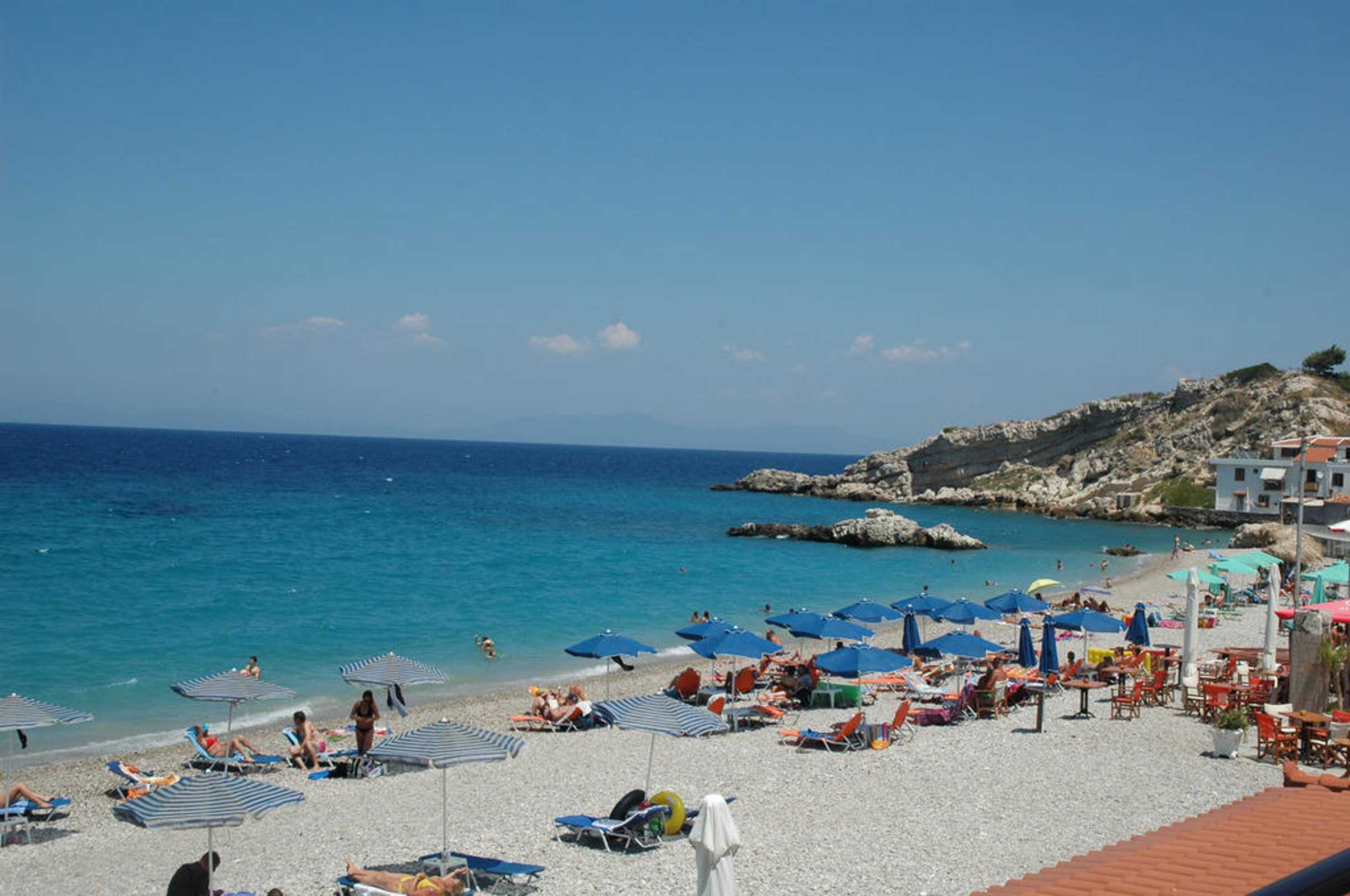 Hotelausblick auf den Strand von Kokkari