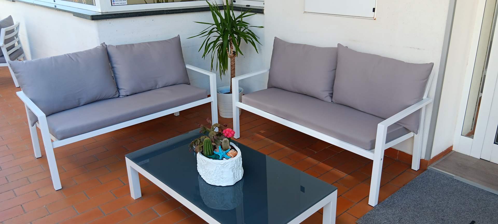 Sitzgelegenheiten vor dem Hotel