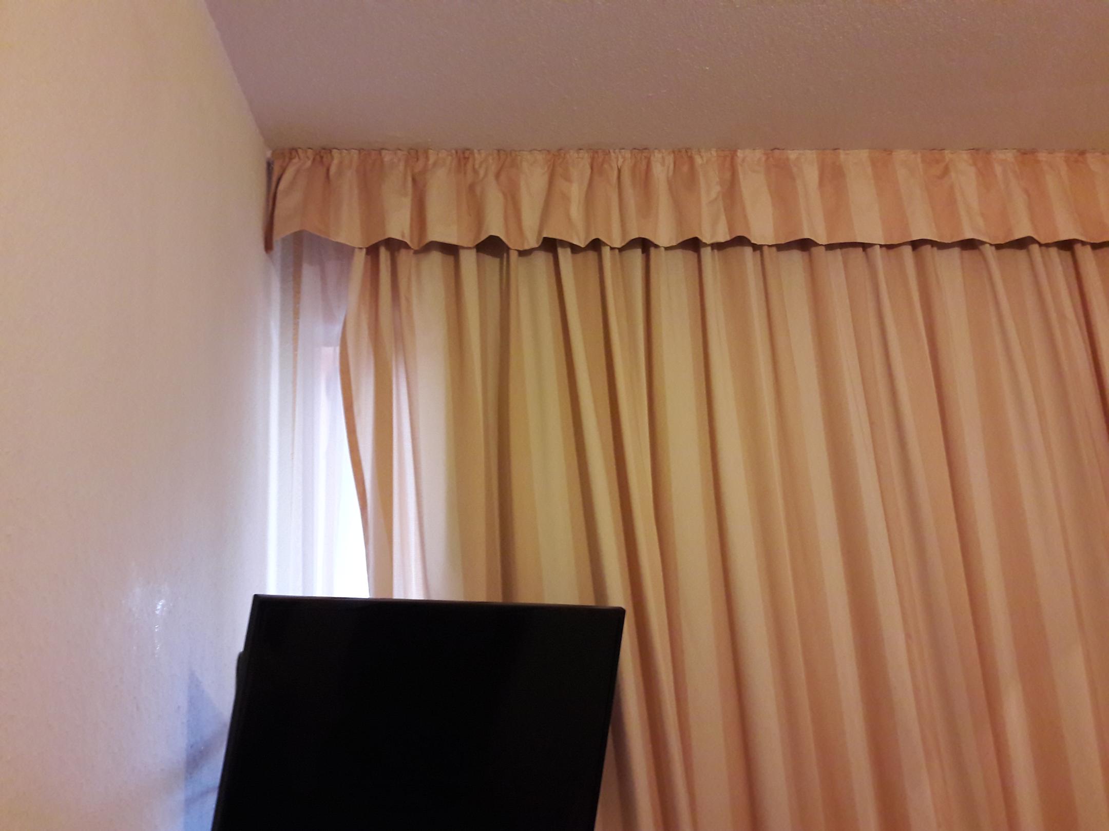 runtergerissene Gardine, dahinter sofort der Durchgangsflur