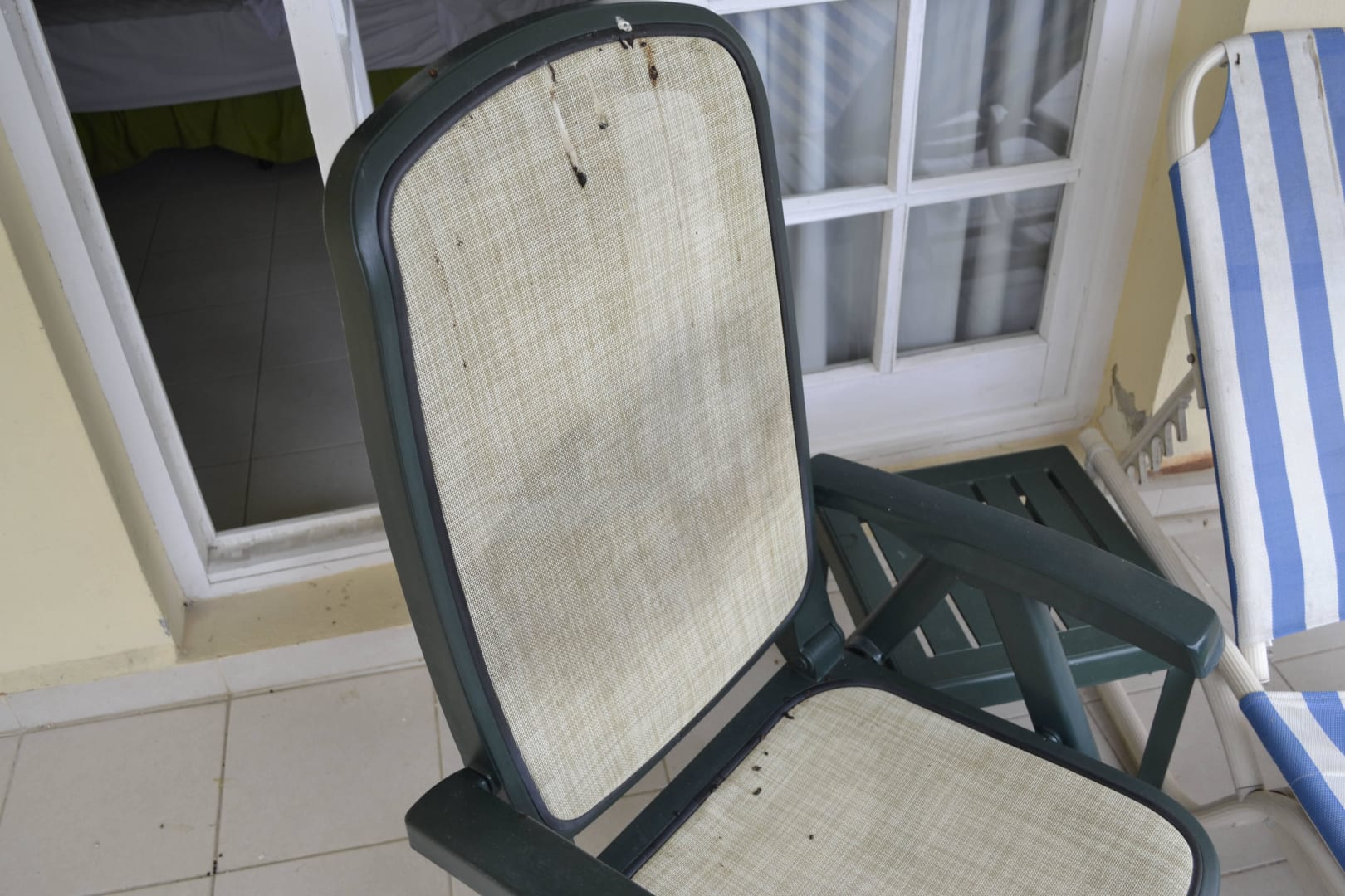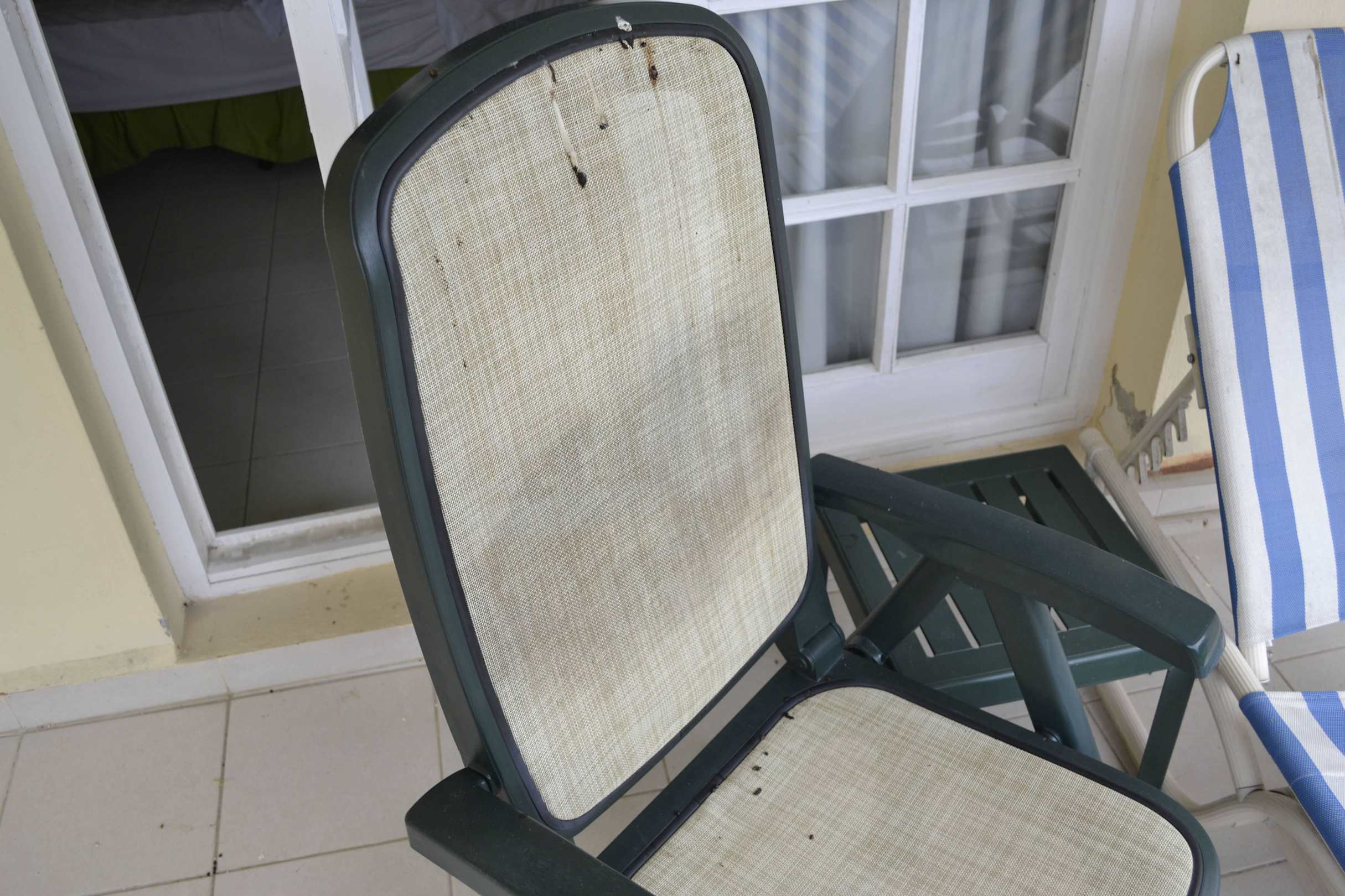 Dreckiger Sessel  am Balkon Hotel Los Cactus