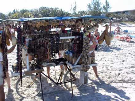 Strandverkäufer mit Fahrradladen