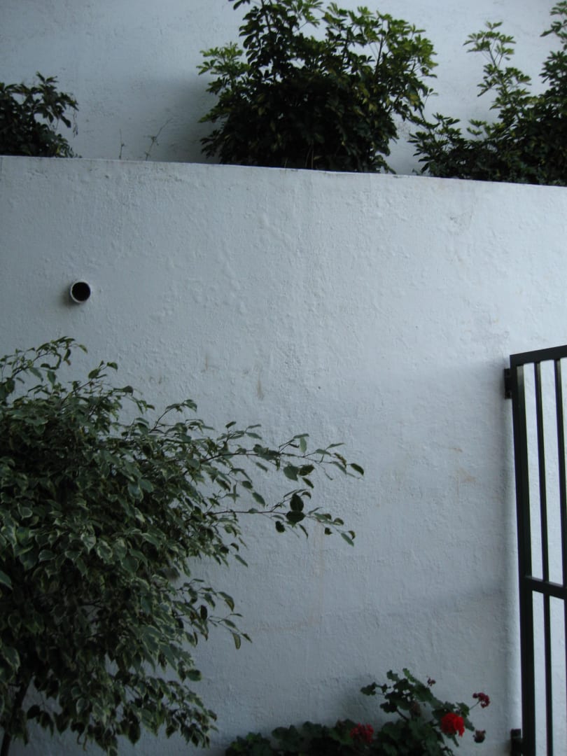 direkter Ausblick durch die Tür auf die meterhohe Mauer