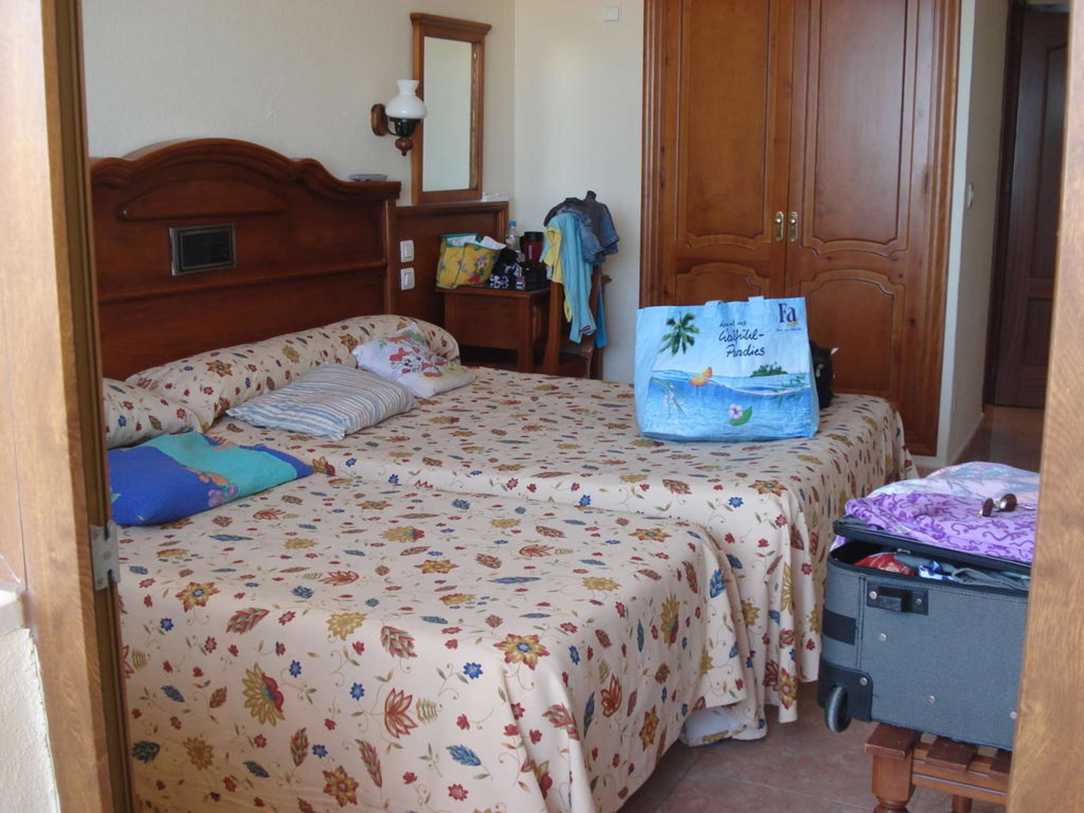 Zimmerso groß und gut ausgestattet war dieses Zimmer für 3 Erwachsenen. Ein Einzelbett und ein Doppelbett zusamengeschoben.