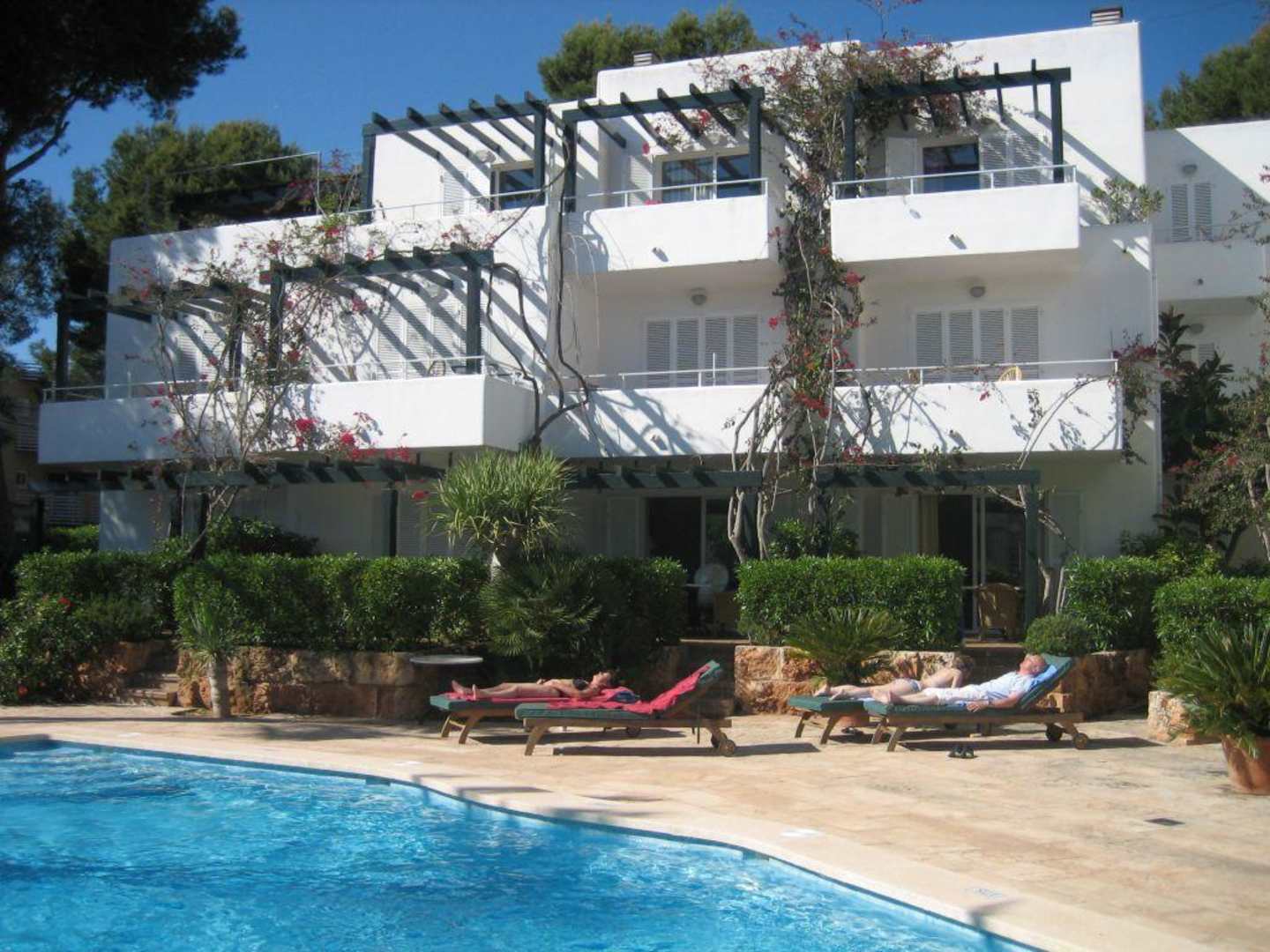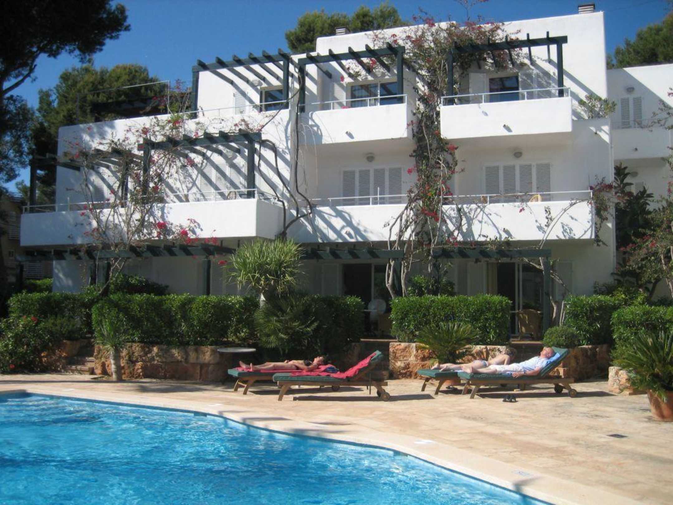 Ein Gebäude der Anlage mit Pool