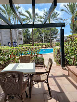 Blick aus dem Appartement auf den kleinen Pool
