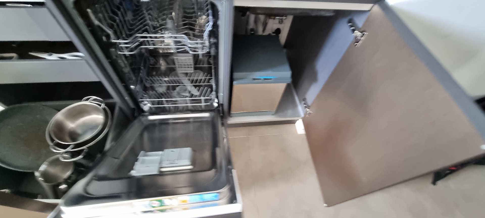 Töpfe, Spüler und Abfalleimer