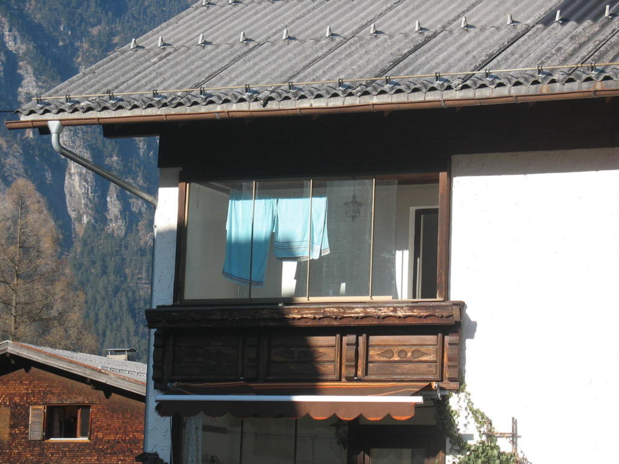 Unsere verglaste LoggiaHerrlich, am And nach dem skifahren auf dem Balkon in der Märzsonne das "Feierabendbier" zu geniessen.
