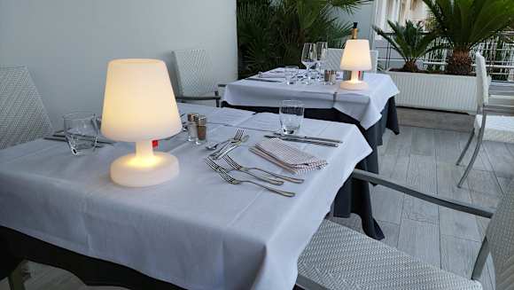 Terrasse auf der man das Abendessen einnehmen kann.