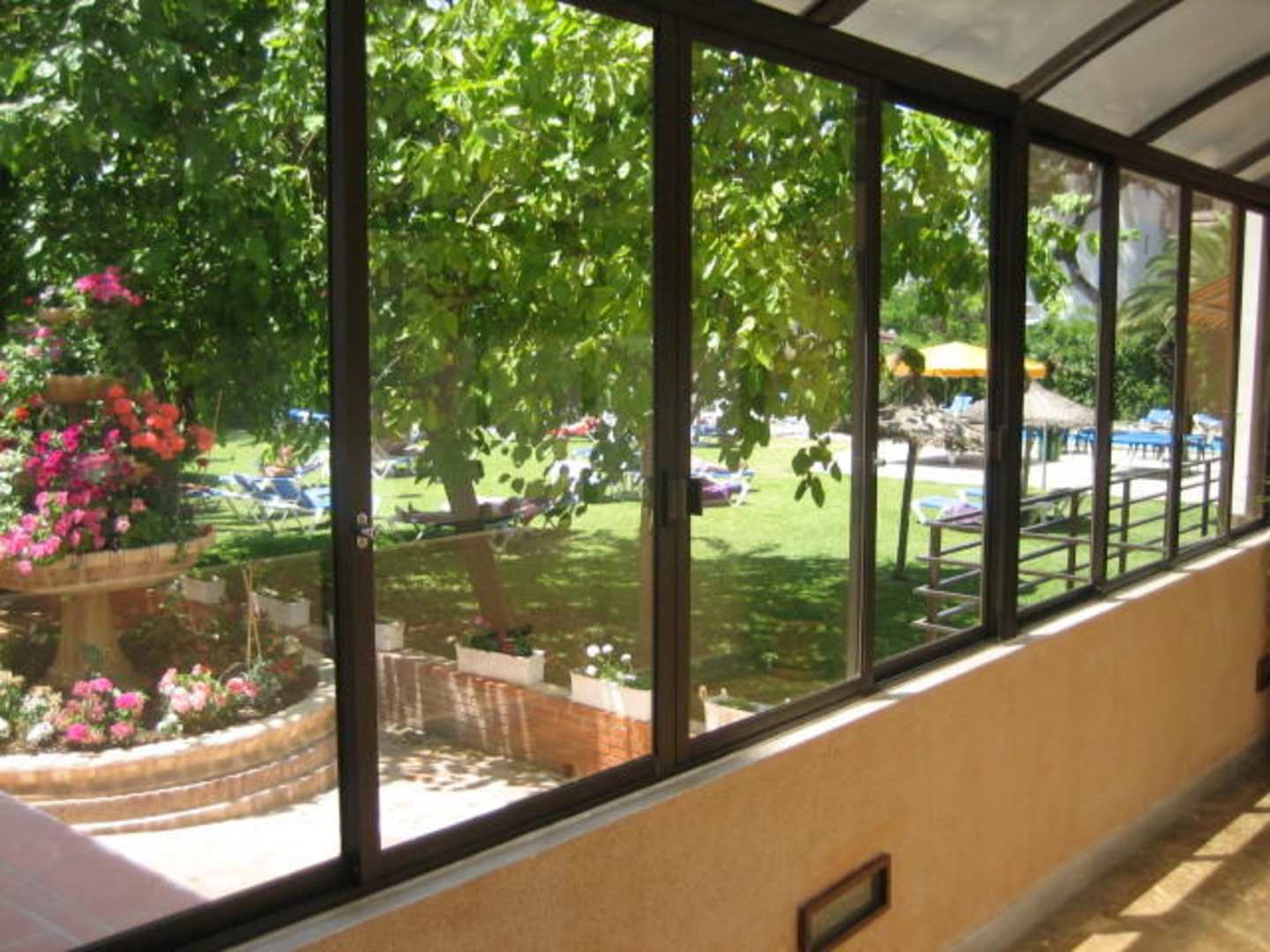 Blick in Richtung Garten mit Pool.