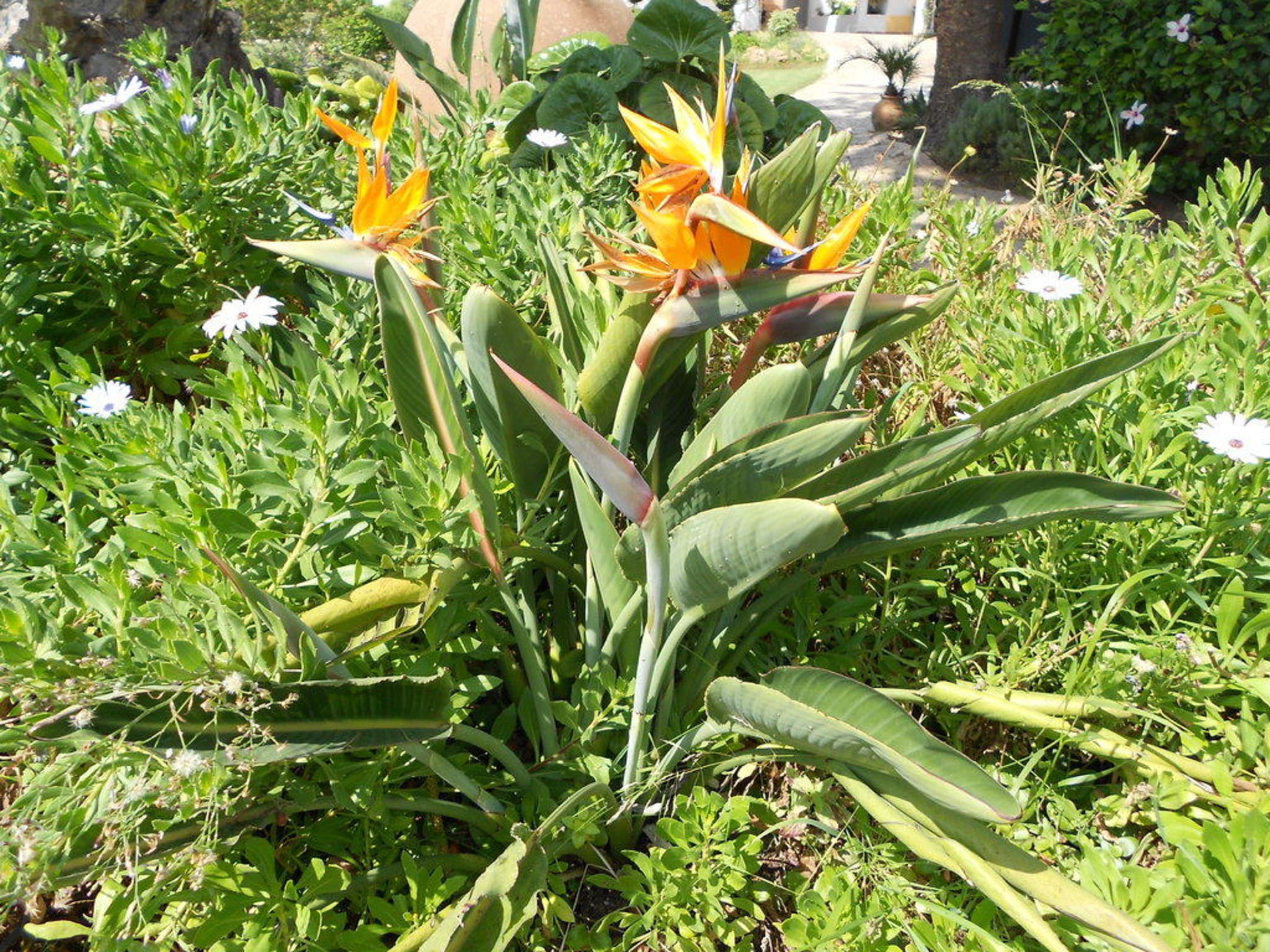 Wunderschöne StrelitzienParadiesvogelblume in wundervoller und gepflegter Gartenanlage