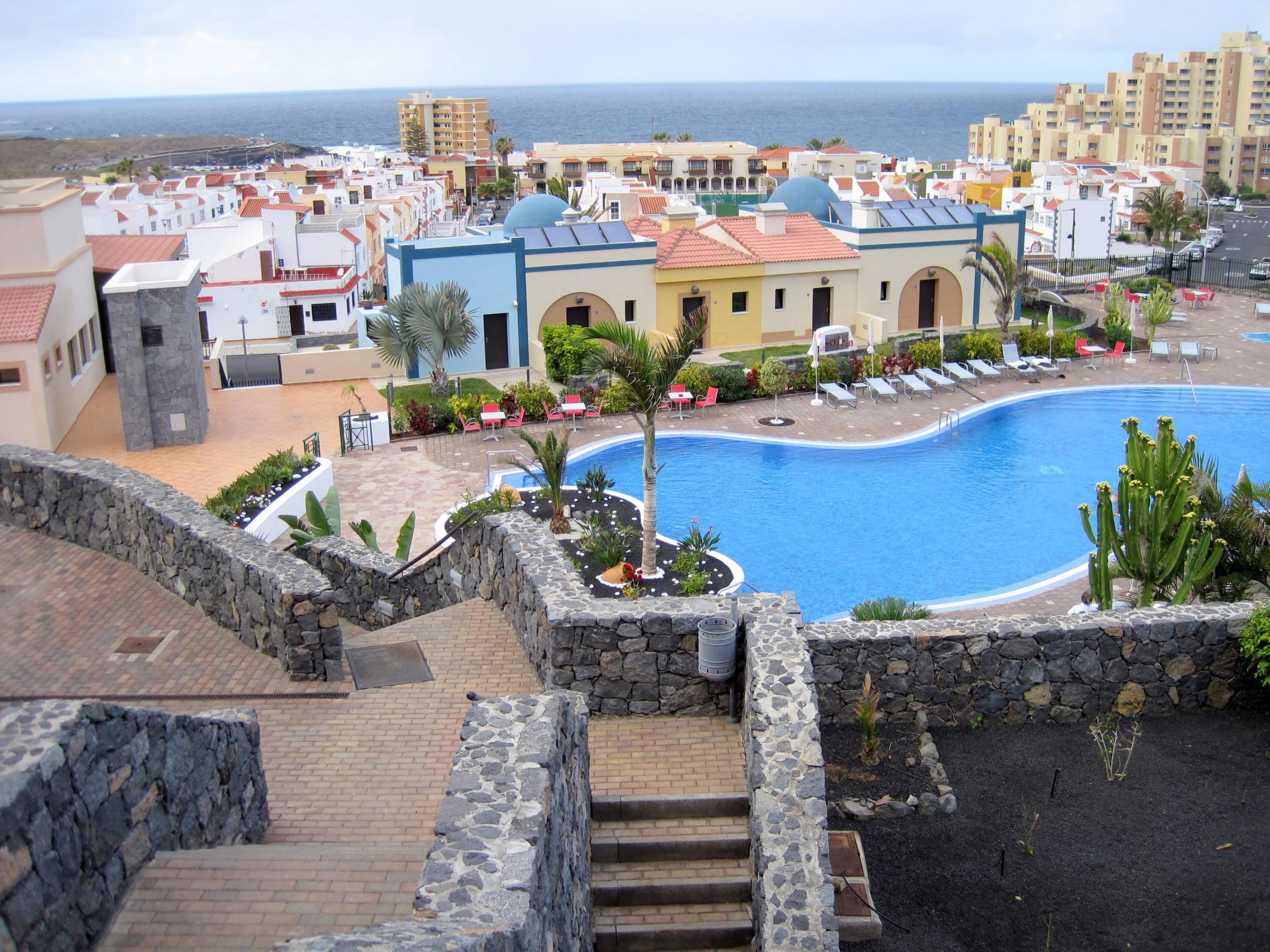 Blick vom oberen Hotelbereich zum AtlantikNur die "bunten" Häuser am Pool gehören noch zum Hotelbereich