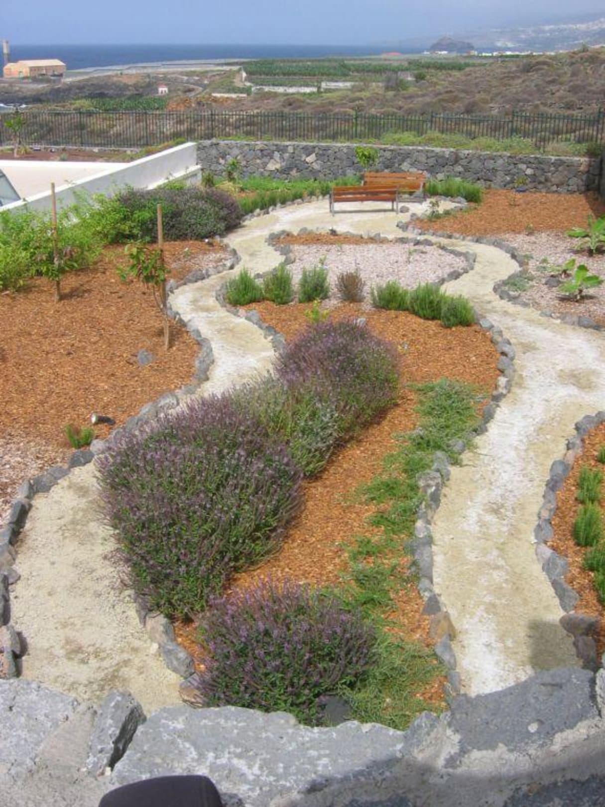 Die Pflanzen im frisch angelegten hoteleigenen Kräutergarten sind noch relativ klein; die Kräuter werden natürlich in der Hotelküche verwendet.