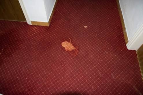 Coś się rozlałoWykładzina dywanowa na korytarzach, kumuluje wszystkie zabrudzenia i trochę je widać.