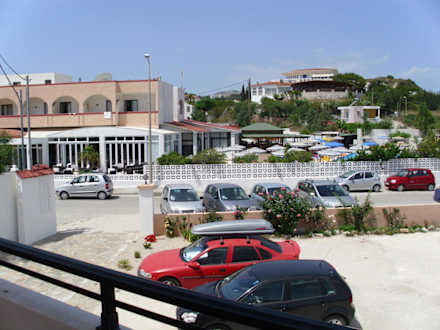 Blick auf Hotel und PoolbarDas Bild zeigt eine Aufnahme des Hotels mit Außenanlage (hinter Mauer beginnent) und Poolbar.