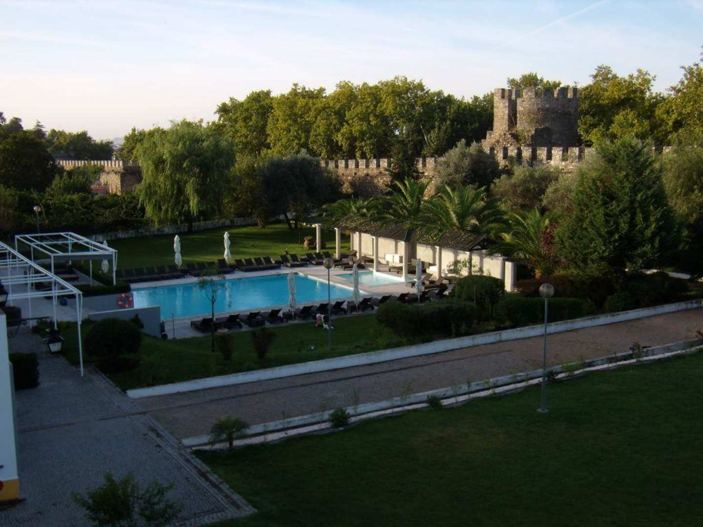 Hotel M'ar de Muralha (ehemals de Cartuxa)Blick vom Hotelzimmer auf den Pool und die Stadtmauer von Evora