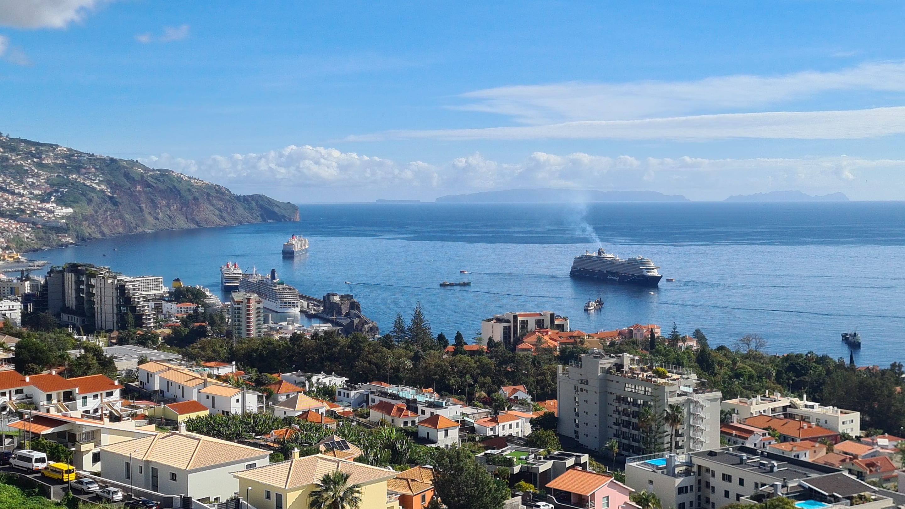 Blick auf Hafen am 31.12. mit vielen Kreuzfahrtschiffen