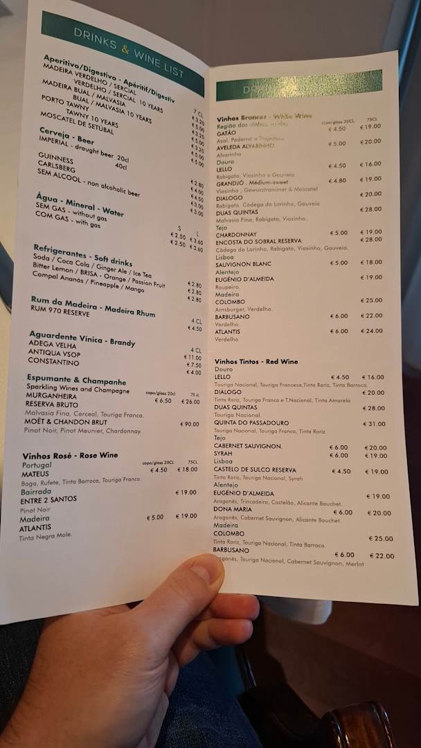 Preisliste für die Getränke im Restaurant