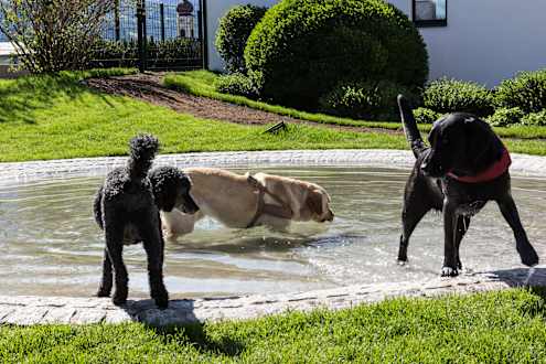 In der Wassermulde auf dem Hundespielplatz