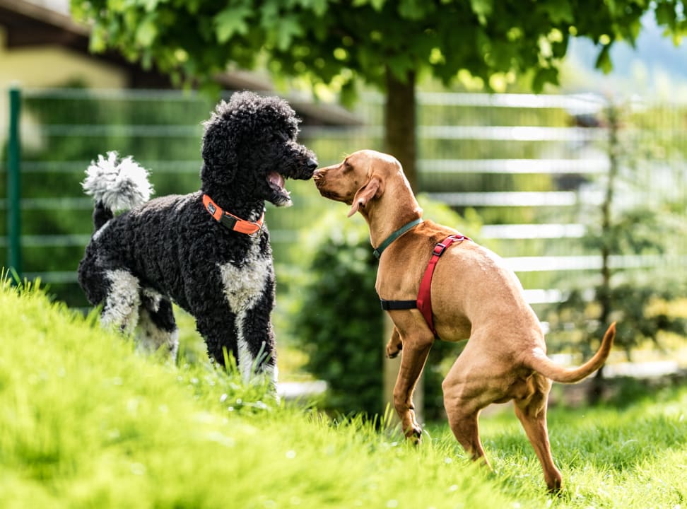 Königspudel (Amigo) und Magyar Vizsla