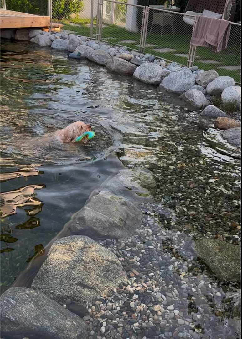 Unsere Hunde schwammen gern im Hundeschwimmteich.