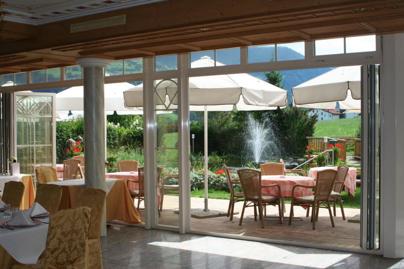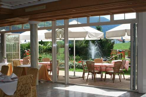 Ausblick vom Restaurant auf den Garten