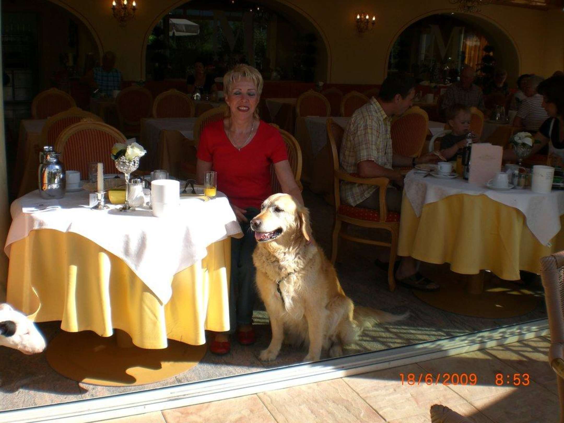 Maxi mit Frauchen beim Frühstück