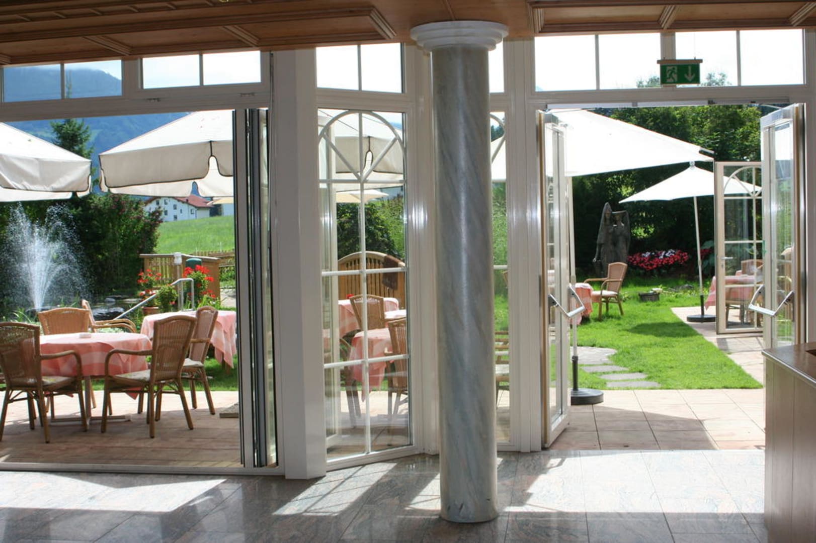 Ausblick vom Restaurant auf den Garten
