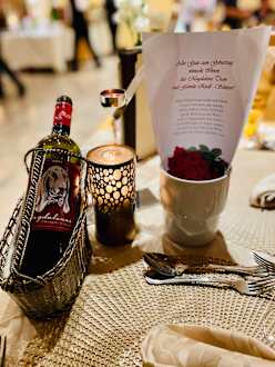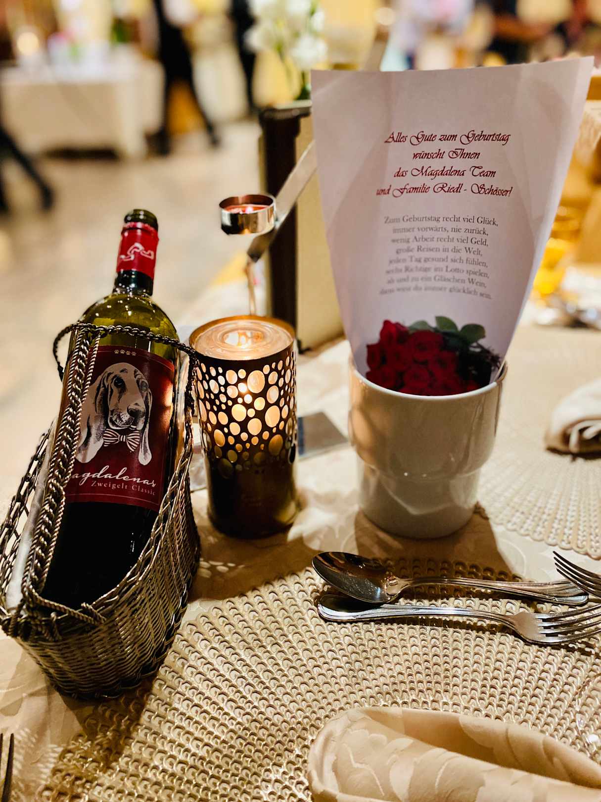 An meinem Geburtstag wurde ich am Tisch mit einem lieben Glückwunsch und einer Flasche des sehr empfehlenswerten Hausweins beschenkt. Vielen Dank!