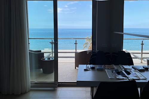 Blick vom Zimmer zum Balkon und dem Meer - einfach traumhaft