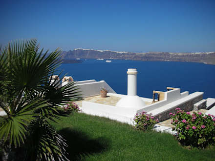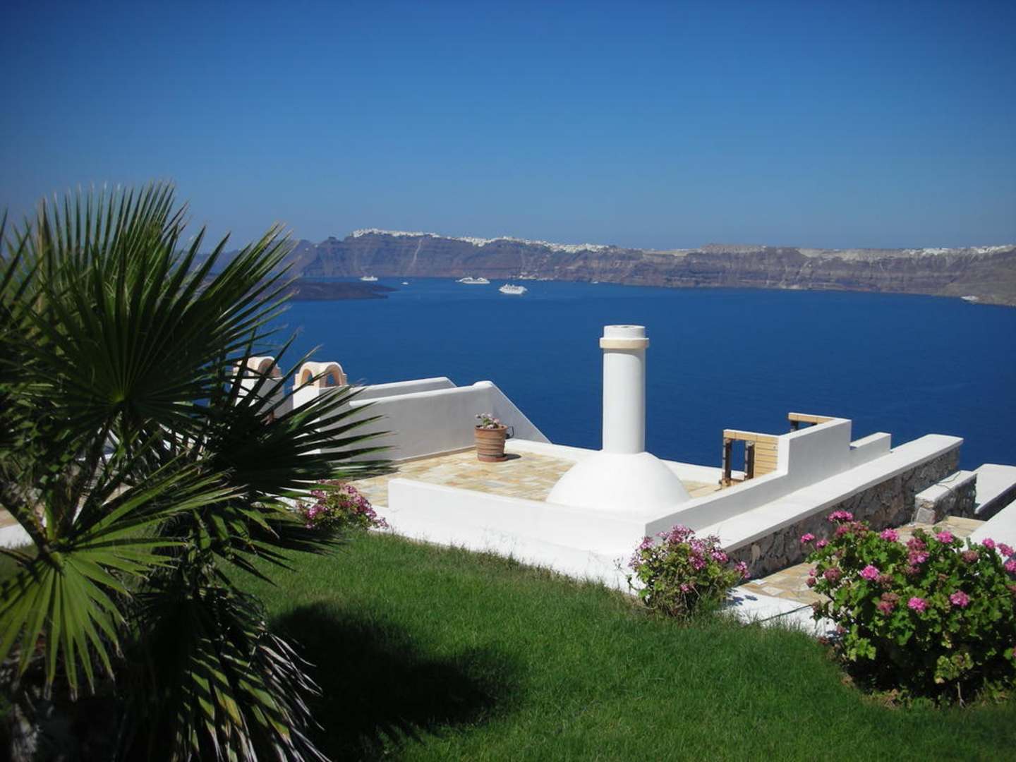 Blick auf die Kreuzfahrtschiffe und Fira