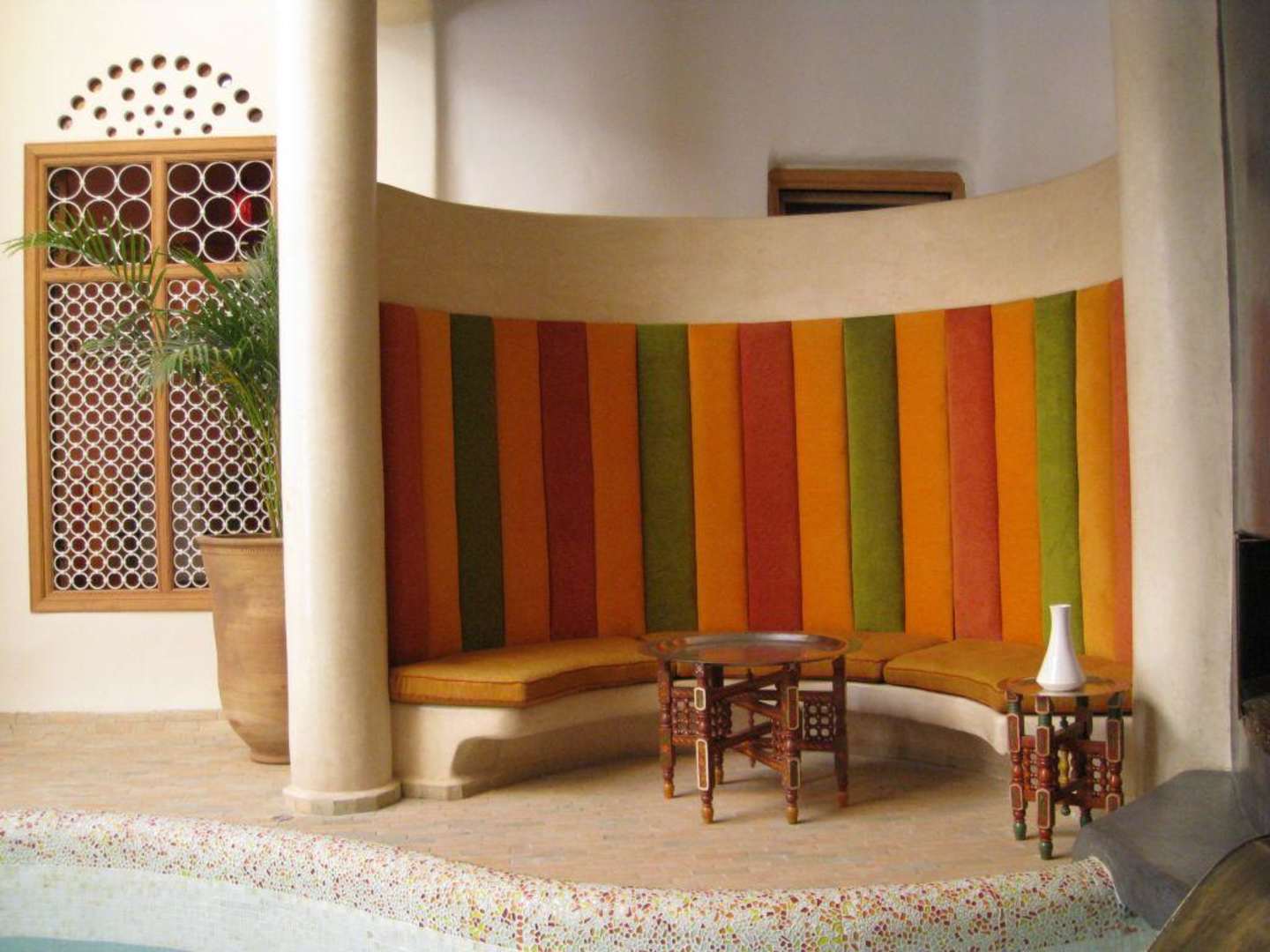 Sitzecke am Pool im Innenhof