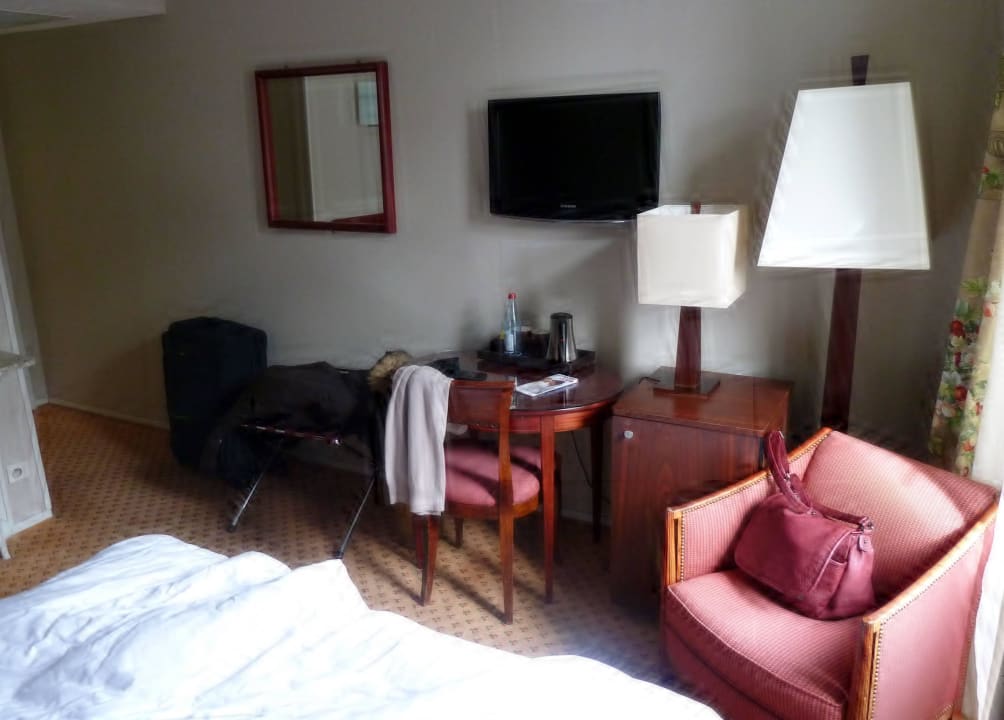 Schreibtisch, TV, Sitzgelegenheit