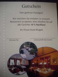 10% Rabatt im Restaurant für Hotelgäste.Toller Service: 10% Rabatt im Restaurant für Hotelgäste.