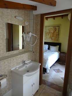 Blick vom Bad ins Zimmer