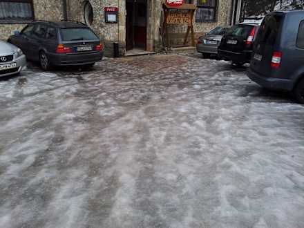 Der Parkplatz und der Eingangsbereich war nicht geräumt und so doll vereist das es schwer viel ohne sich die Füsse zu brechen zum Auto oder ins Hotel zu kommen