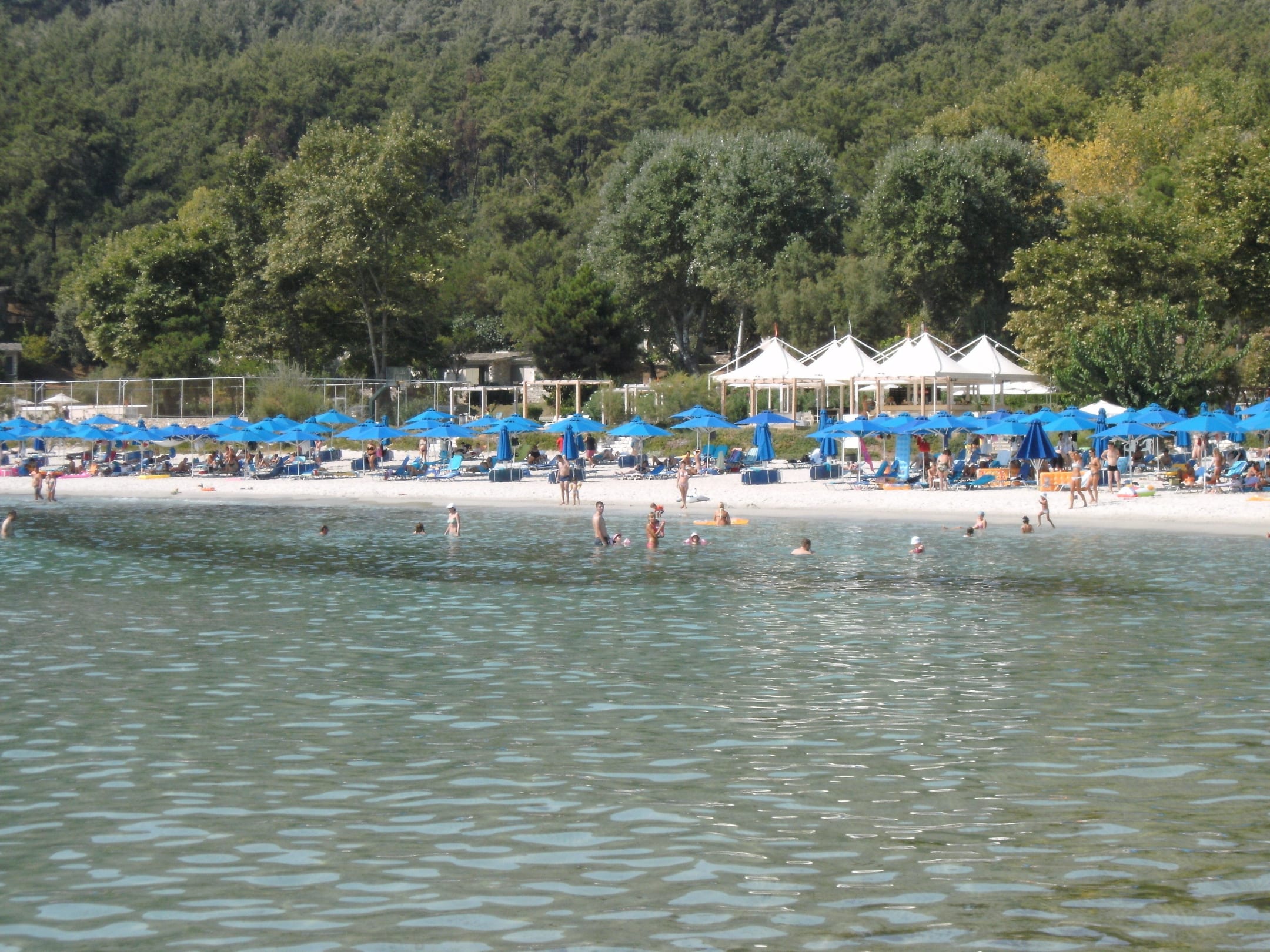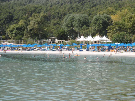 Strand, im Hintergrund Strandbar