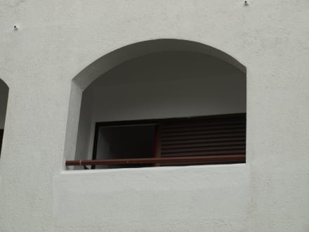 Blick vom Pool auf Balkon Zimmer 115