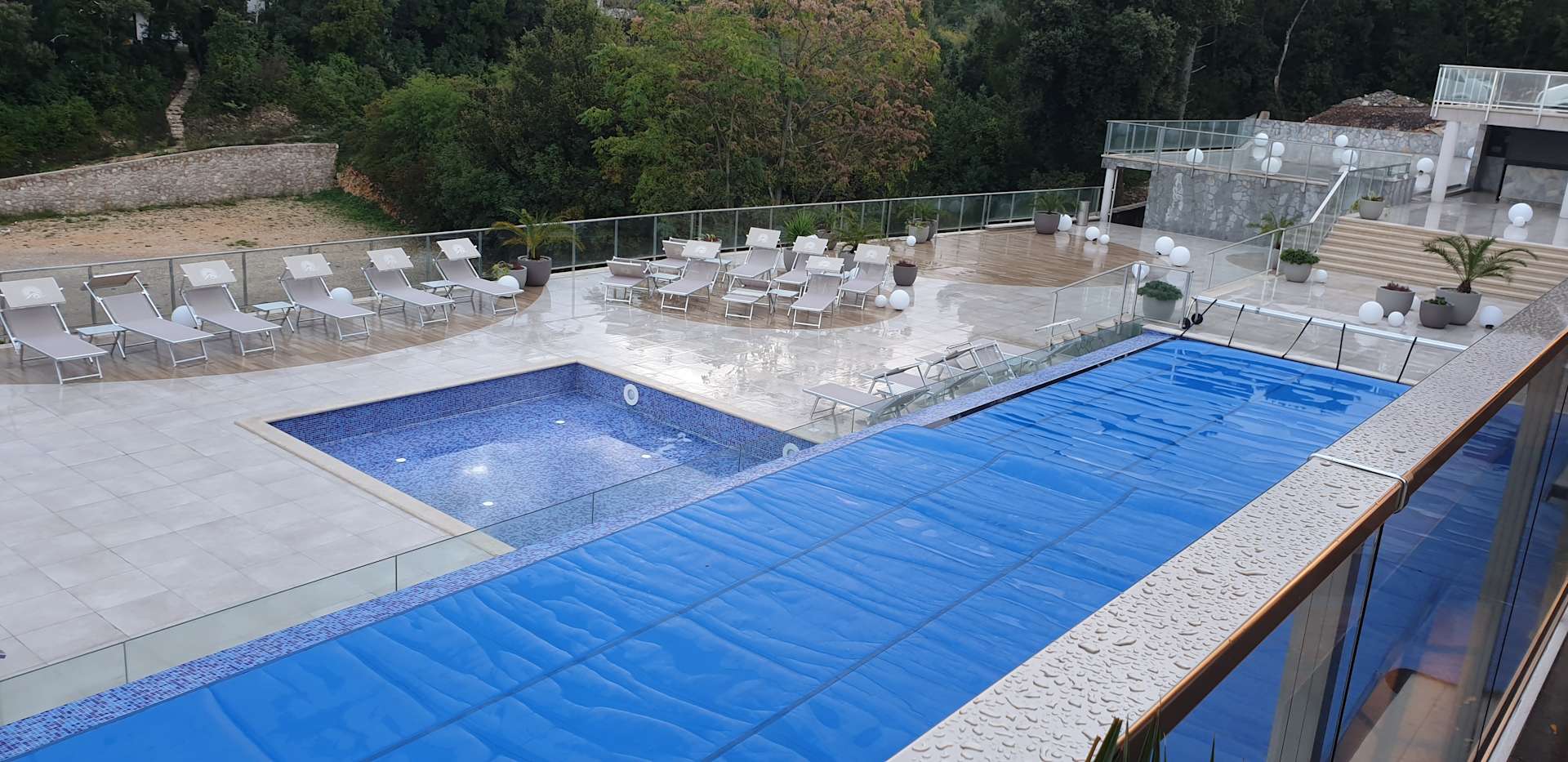 Außenpool morgen noch abgedeckt