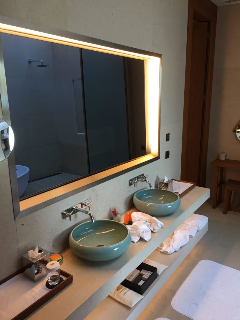 Badspiegel mit eingebautem Fernseher. Ca. 35 qm.